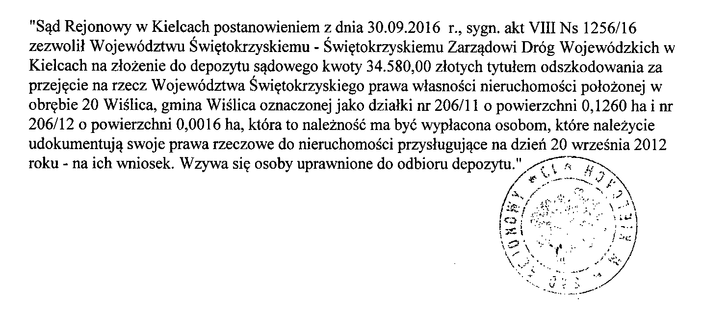 Jesteś tutaj: Start / Ogłoszenia / Wydział Organizacyjny i Kadr / Ogłoszenie w sprawie depozytu sądowego - Sygn. akt VIII Ns 1256/15