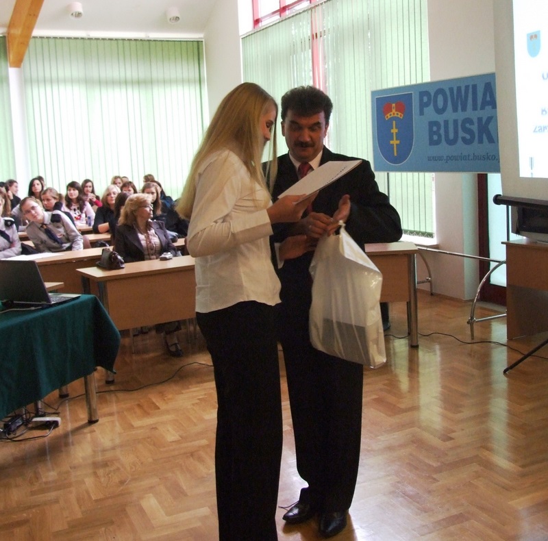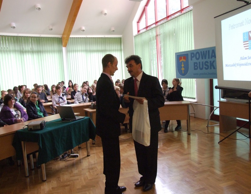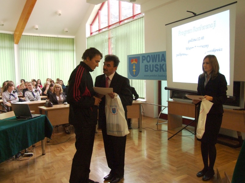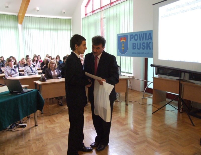 Kolejnym punktem konferencji było ogłoszenie wyników Konkursu Wiedzy Historycznej dla uczniów gimnazjów i szkół ponadgimnazjalnych Powiatu Buskiego pn. „Ruch ludowy w Polsce w latach 1918-1949”, którego pierwszy etap miał miejsce 1 października br. w sali konferencyjnej Starostwa Powiatowego w Busku – Zdroju.