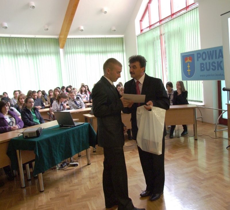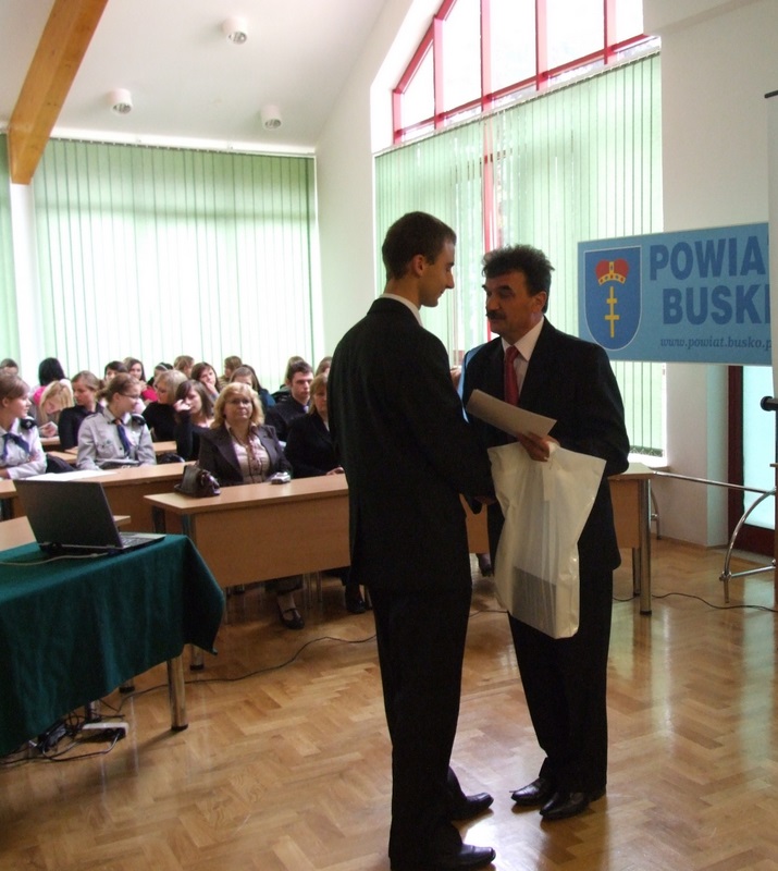 Stanisław Klimczak - Wicestarosta Buski wręczył laureatom nagrody. W kategorii gimnazjów nagrody przyznano następującym uczniom: