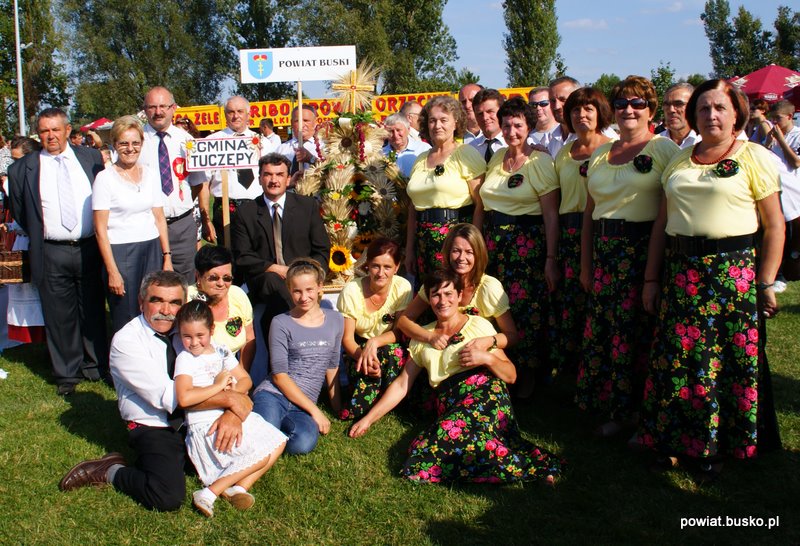 Tegoroczne dożynki wojewódzkie odbyły się 11 września w Skalbmierzu w powiecie kazimierskim. Nasz powiat reprezentowała delegacja z miejscowości Tuczępy z wieńcem, który zajął I miejsce w konkursie powiatowym. Wieniec ośpiewał i obtańczył Zespół Tuczępianie. Na czele delegacji powiatowej stał Przewodniczący Rady Powiatu w Busku-Zdroju Krzysztof Gajek oraz Wicestarosta Stanisław Klimczak, a także Przewodniczący Rady Gminy Tuczępy Bogdan Gozdek wraz z Wójtem Tucząp – Markiem Kaczmarkiem i Sekretarzem Gminy Stanisławą Stolarską.
